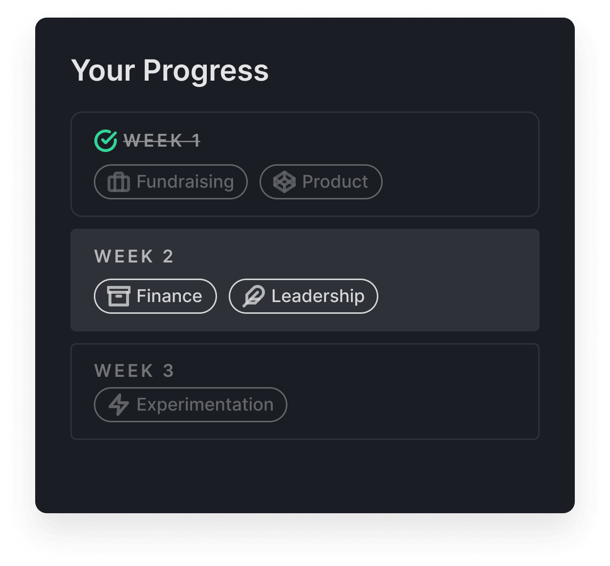 From building you a unique curriculum to getting you to pitch mastery as fast as possible, the AI Mentor is at your disposal 24/7.